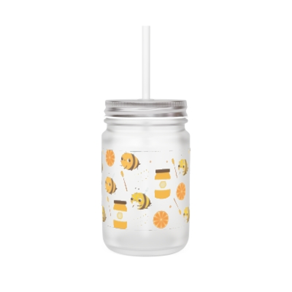 Made with sleek frosted glass these personalized mason jar mugs come complete with a straw and lid.