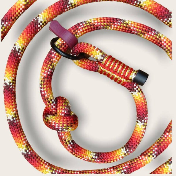 The knot is before the ring, so the line cannot be fully tightened around the neck. A biothane stopper is attached to prevent the leash from coming loose.